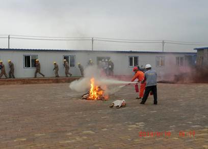 演練前,項目部組織了消防預(yù)案演練培訓(xùn),使現(xiàn)場人員掌握一定的消防知識,增強員工在緊急情況下的應(yīng)變能力,自我防護能力。項目部還利用張貼標語等形式大力宣傳消防安全的重要性。演練過程中,現(xiàn)場人員迅速對火災(zāi)事故警報做出反應(yīng),救援小組負責(zé)人也有效組織本組組員疏散、警戒和投入滅火行動中。