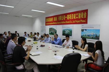 8月19日上午,華南公司舉行路博潤(rùn)添加劑一期項(xiàng)目竣工驗(yàn)收會(huì),路博潤(rùn)添加劑(珠海)工廠總經(jīng)理Greg Mccull0ugh(馬國(guó)瑞)、路博潤(rùn)亞太地區(qū)總監(jiān)彭文浩、IPMT總監(jiān)吳強(qiáng)、廣東順業(yè)監(jiān)理公司總監(jiān)馮華、珠海市金灣區(qū)質(zhì)檢站站長(zhǎng)王濤、高欄港經(jīng)濟(jì)區(qū)統(tǒng)籌發(fā)展局副局長(zhǎng)何錦基、華南公司經(jīng)理陳申付、華陸科技工程有限公司路博潤(rùn)項(xiàng)目設(shè)計(jì)經(jīng)理翟憲生等21位領(lǐng)導(dǎo)和專家參加了會(huì)議。