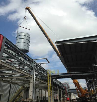 本次吊裝為擴建工程反應(yīng)罐,吊裝過程中存在許多困難。由于03裝置區(qū)已經(jīng)投產(chǎn),罐體必須從屋頂進入廠房,要求拆除屋頂,導(dǎo)致受限空間和作業(yè)面積狹小,吊裝過程中吊車駕駛員視線又被廠房墻壁擋住,完全靠協(xié)調(diào)指揮,雖然設(shè)備只有32噸,但吊裝高度高(35米)、吊裝作業(yè)半徑大,生產(chǎn)裝置不能停產(chǎn)的狀況,給本次吊裝增添了新的難度。華南公司在時間緊迫;任務(wù)艱巨的情況下,華南公司經(jīng)理陳申付、施工經(jīng)理丁文明積極與業(yè)主、IPMT、監(jiān)理公司協(xié)調(diào)溝通達成共識,合理安排勞動力,精確計算吊裝角度,在確保吊裝安全的前提下、果斷指揮,細(xì)致操作,使吊裝工作在預(yù)控范圍內(nèi)有序推進,經(jīng)過8個小時的鏖戰(zhàn),安全高效完成了這次吊裝任務(wù),得到了業(yè)主的高度評價。