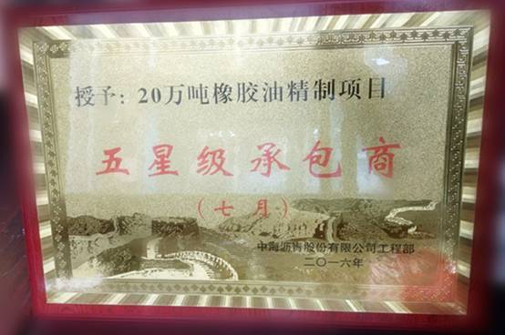 此次評(píng)選活動(dòng)歷時(shí)1個(gè)月,由中海瀝青公司工程管理部組織評(píng)選,健康安全環(huán)保部、技術(shù)組參與評(píng)選。評(píng)選要求各承包商每月考核分?jǐn)?shù)100分,考核分?jǐn)?shù)在90分以上,頒發(fā)“五星級(jí)承包商”稱號(hào)。這是4月份至7月份以來,業(yè)主發(fā)的第一個(gè)“五星級(jí)承包商”稱號(hào),也是目前20萬噸橡膠油項(xiàng)目的第一個(gè)榮譽(yù)。