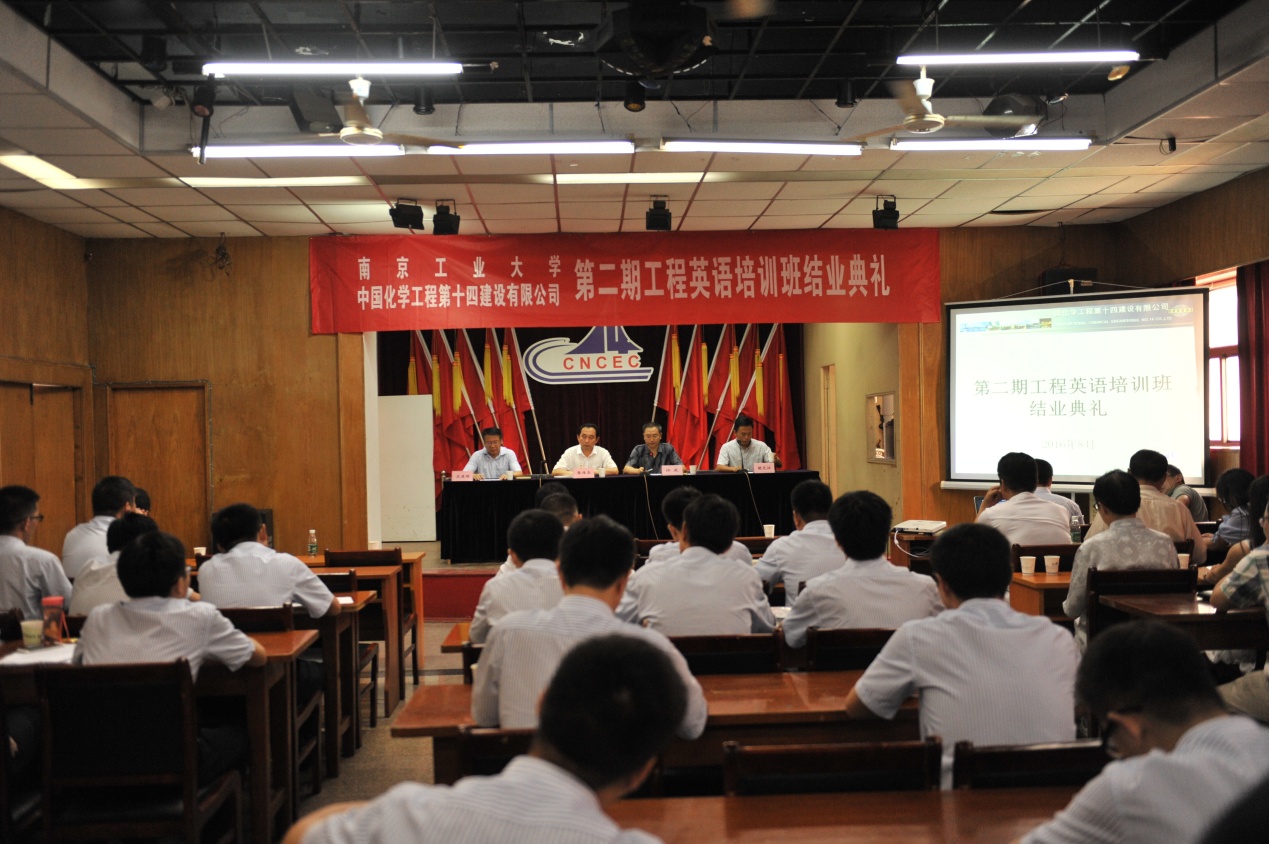 近日,公司與南京工業(yè)大學合作舉辦的為期近6個月的工程英語培訓班順利結(jié)業(yè),在公司十四樓會議室舉行了結(jié)業(yè)典禮。公司董事長、總經(jīng)理張傳玉,副總經(jīng)理史建明,南京工業(yè)大學外國語學院黨委書記江定、副院長胡元江出席了結(jié)業(yè)典禮,公司及學校部分領(lǐng)導、有關(guān)部門人員、培訓班教師、學員等60余人參加了典禮。