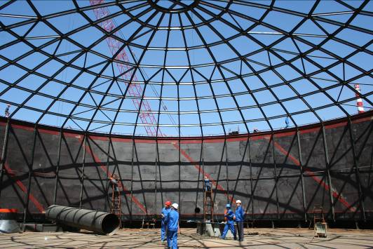 神華烏海煤焦化有限責(zé)任公司5萬(wàn)m3濕式氣柜安裝現(xiàn)場(chǎng)