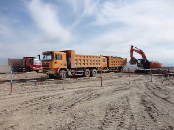2011年5月15日,按照集團(tuán)公司要求,我公司承建的備煤裝置正式破土動(dòng)工,備煤裝置貯煤倉由七個(gè)圓筒倉組成,直徑22米,高47米,混凝土壁厚0.4米;基礎(chǔ)埋深6.3米,底板為3.3米厚C40混凝土;土方開挖量為5萬立方米,現(xiàn)場采用反鏟挖掘機(jī)挖土,20噸自卸汽車運(yùn)土,運(yùn)距4.2公里,外運(yùn)土方量為2.5萬立方米,計(jì)劃10天內(nèi)完成土方開挖。
