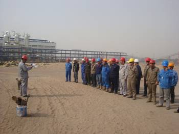 4月23日上午9:00,烏海華氣西來峰LNG項目部在施工現場空曠場地組織開展了火災事故綜合實戰(zhàn)演練。項目經理謝建寧為演練總指揮,總工程師劉淵平和HSE經理李忠民為副總指揮。