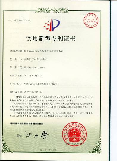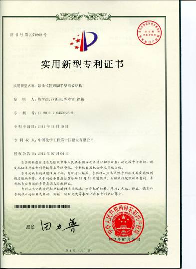 7月19日,公司喜獲國家知識產(chǎn)權(quán)局授予的4項(xiàng)實(shí)用新型專利證書。截至目前,公司2011年提交的6項(xiàng)實(shí)用新型專利申請已全部通過國家知識產(chǎn)權(quán)局的審核。