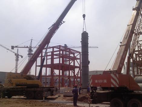 兗礦國泰年產(chǎn)15萬噸丁醇施工現(xiàn)場設(shè)備吊裝