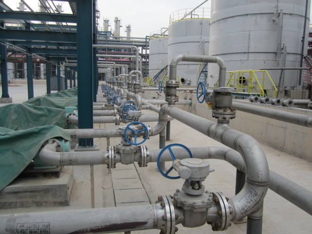 醇解罐區(qū)工藝配管工作,由公司勞務(wù)隊葛飚隊承擔(dān)。該隊從入場施工以來,認(rèn)真履行公司三項提升要求,積極組織施工安裝工作。罐區(qū)施工中,做到所有閥門整齊劃一;螺栓留長統(tǒng)一;所有管段按100%封口要求去做;材料未齊的儀表管咀開孔,全部在預(yù)制階段開孔,且開孔后清理完立即膠帶封孔;不銹鋼管道在管架上一次就位前,預(yù)先在碳鋼鋼梁上襯墊石棉板條防止?jié)B碳;所有不銹鋼管道組成件和碳鋼工具堅決隔離;不銹鋼焊口酸洗及時徹底。罐區(qū)配管做到文明施工一日一清,作業(yè)環(huán)境美觀整潔。張董了解到罐區(qū)工藝配管焊接質(zhì)量良好后指出,施工隊努力做好日常工作,內(nèi)在質(zhì)量自然會提升。