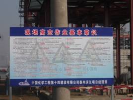 現(xiàn)場出入口的高空作業(yè)宣傳牌