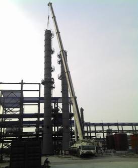 德馬格350噸汽車起重機是南京飛馳吊裝工程有限公司現(xiàn)今噸位最高、性能最好的一臺汽車起重機。于2012年2月14日由申屠洪武、麥柯柯兩位師傅開往廣東省珠海路博潤項目部駐勤,經(jīng)過7個月的辛勤工作,又于9月轉(zhuǎn)戰(zhàn)至浙江寧波項目部,工作期間為項目順利完成了六臺60噸冷卻器、順酐裝置再閃蒸塔、焚燒系統(tǒng)高空煙囪等大型設(shè)備的吊裝工作。12月26日已安全抵達公司生產(chǎn)基地停車場進行休整。