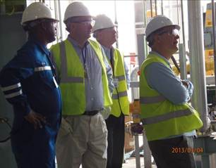 下午13:10,新任路博潤(rùn)公司副總裁Mike Vaughn ,在現(xiàn)任副總裁Larry、珠海路博潤(rùn)項(xiàng)目總監(jiān)Bruce、項(xiàng)目經(jīng)理Norman以及美國(guó)專家的陪同下,對(duì)08區(qū)公用工程、總變電所、綜合辦公樓、化學(xué)分析樓、桶裝倉(cāng)庫(kù)、01、02、03、06主裝置以及罐區(qū)進(jìn)行了全面檢查和調(diào)研。此次視察調(diào)研旨在較為詳細(xì)地了解和真實(shí)的掌握項(xiàng)目建設(shè)情況。