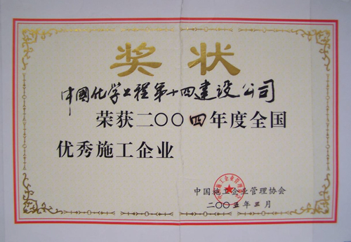 歷經(jīng)五十年不斷發(fā)展,公司憑借精湛的技術(shù)、豐厚的經(jīng)驗(yàn)、雄厚的實(shí)力和優(yōu)質(zhì)的服務(wù),為國(guó)家化學(xué)工業(yè)發(fā)千余項(xiàng)精品工程,獲得“國(guó)務(wù)院嘉獎(jiǎng)令”、“中國(guó)建筑工程魯班獎(jiǎng)”,“國(guó)家百項(xiàng)經(jīng)典及精品工程獎(jiǎng)”、“國(guó)家優(yōu)質(zhì)工程金獎(jiǎng)“國(guó)家優(yōu)質(zhì)工程銀獎(jiǎng)”、“全國(guó)優(yōu)秀焊接工程獎(jiǎng)”、“全國(guó)優(yōu)秀吊裝工程獎(jiǎng)”、“化學(xué)工業(yè)優(yōu)質(zhì)工程獎(jiǎng)”等各種嘉獎(jiǎng)200余項(xiàng);并多次被授予“全國(guó)優(yōu)秀施工企業(yè)”、”全國(guó)建筑業(yè)先進(jìn)企業(yè)”、“全國(guó)用戶滿意施工企業(yè)”,“全國(guó)建筑業(yè)誠(chéng)信企‘’全國(guó)建筑業(yè)AAA信用企業(yè)”、“全國(guó)重合同守信用企業(yè)”、“江蘇省知名建設(shè)承包商”等多種榮譽(yù)稱號(hào)。